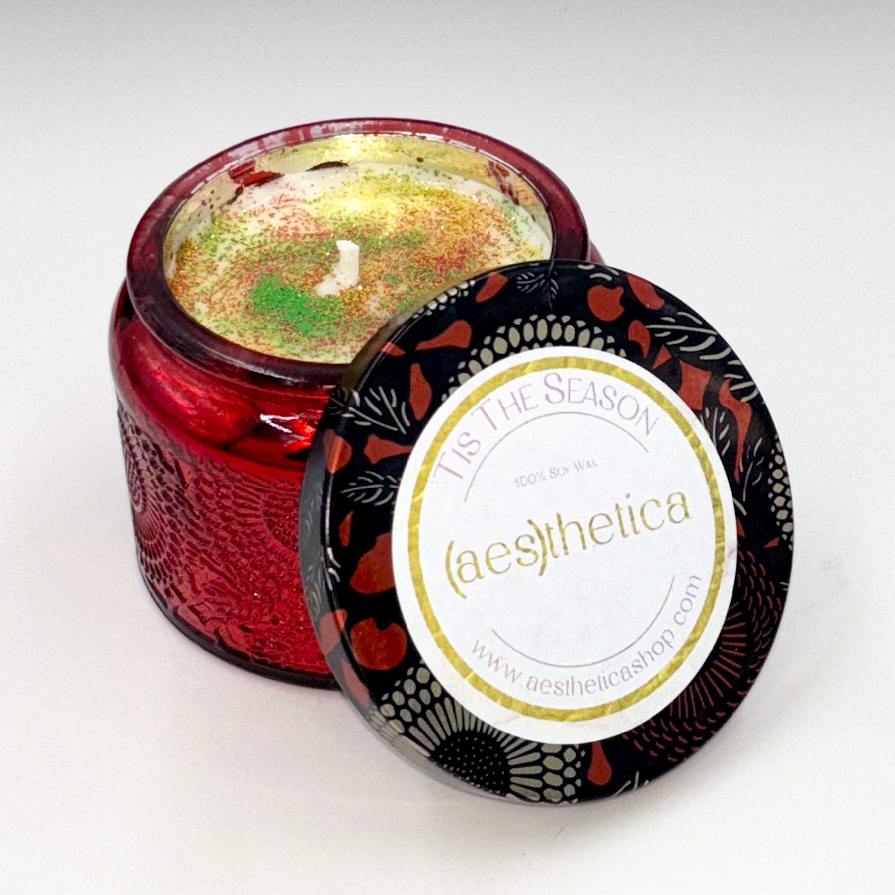 New limited edition scent for the holidays! This luxurious candle has a clean and comfortable smell that evokes classic Christmases by the fire. Notes of cranberry apple cider, mistletoe, blue spruce trees, and warm spices are blended perfectly to bring you something truly special.